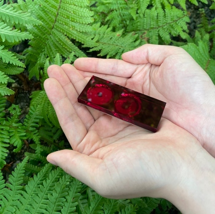 혈액 상온 보전 기술 이용, 생전에 직접 피 한 방울 채취, 미니 블록에 담아.