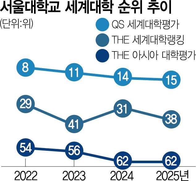 9. 서울대, 국제 대학평가에서 순위 계속 하락 → 한국 경제 규모, 인구 규모 비해서도 저조.