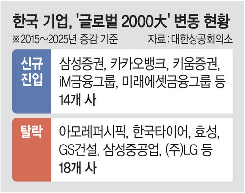 → 포브스 세계 2000대 기업에서 탈락한 한국 기업 대부분 제조업, 반면 신규 진입은 금융업.